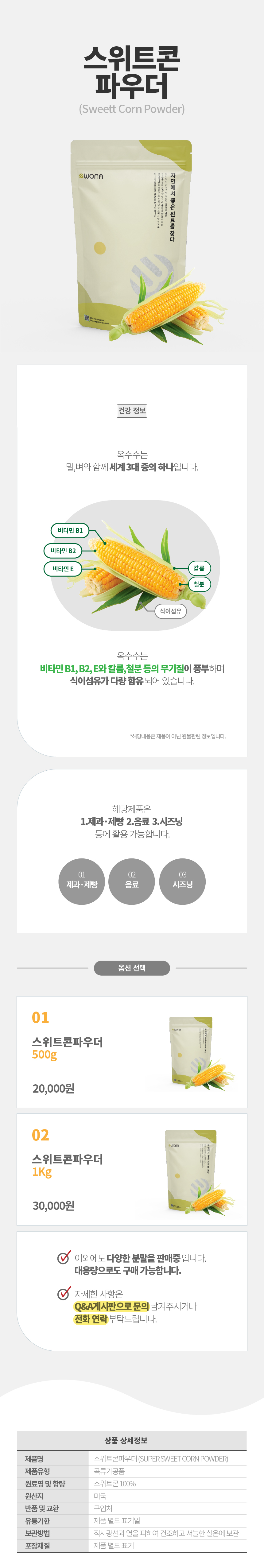 옥수수는 비타민 B1, B2, E와 갈륨, 철분 등의 무기질이 풍부하며 식이섬유가 다량 함유 되어 있습니다.