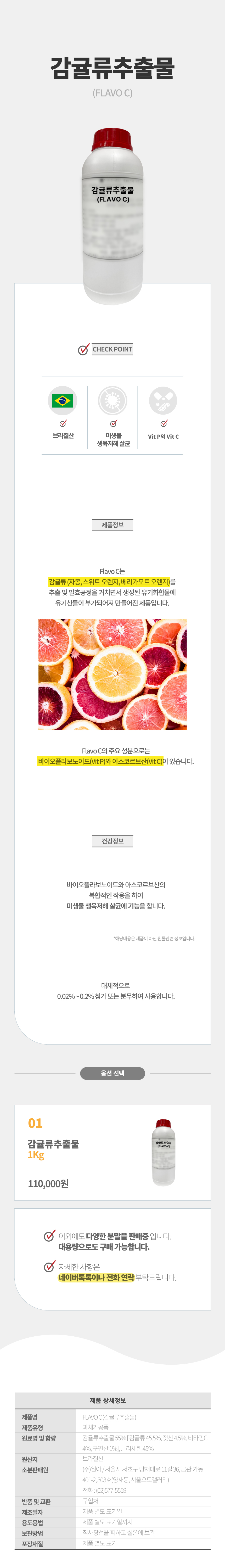 감귤류를 추출 및 발효공정을 거치면서 생성된 유화합물에 유기산들이 부가되어져 만들어진 제품입니다.